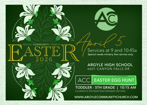 At ACC, we're changing the way we church! That means that our community is more than a Sunday worship service. We're an authentic community of faith doing life together for Jesus in Argyle. We do that through One-on-one discipleship, Life Groups, and Special Events throughout the year. Join us as we make more and better disciples here in Argyle!