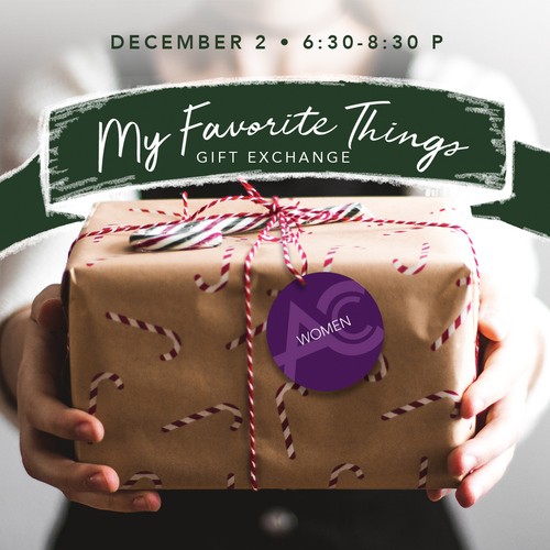 December 2, 2025--ACC Women's Ministry invites you to join them for their annual Favorite Things Party. Bring one of your favorite things valued at a maximum of $30 to participate in the gift exchange. There will be fantastic food and fellowship - it's a not-to-miss evening with the girls so register today!