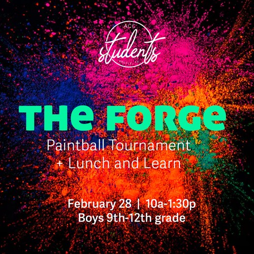 February 27--Events tailored especially for high school girls and guys are set for the last weekend of February. Feb 27-28, the girls are headed to Carollton for the annual There{4} Conference for inspiration and encouragement from a variety of speakers and musical guests. Saturday, February 28th, it's the guys turn for some messy fun at The DFW Adventure Park in Northlake. The guys will have a paintball war and then eat together and participate in a panel discussion covering essential challenges faced by young men today.